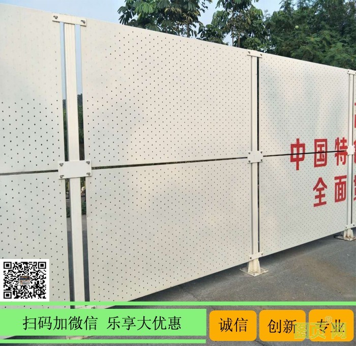 冲孔板围挡是以冲孔板为主要材料的一种隔离网,通过采用不同大小的网孔,排列方式,表面处理,可以制成不同款式的护栏网,可用于穿越城市地段的高速公路、铁路、地铁等交通市政设施中的环保噪声治理屏障,建筑物体墙、发电机房、工厂厂房、及其它噪声声源的隔声降噪用吸音板,冲孔板具有良好的透风性也可以用于沿海台风防护。本产品具有坚固耐用,美观大方,防护性好等特点